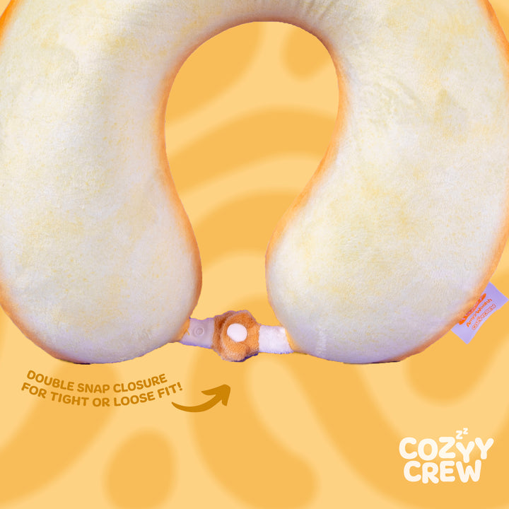 Shhh…Lil Toast is catching some Z’s! The Sleepy Edition of the Lil Toast Neck Pillow brings back everyone’s favorite crazy piece of bread! Only this time, he’s snoozing in style. With his eyes closed and soft little snores, this ultra-comfy pillow is perfect for cozy naps on planes, in the car, or anywhere your adventures take you. Featuring adjustable feet for a snug, custom fit, it’s designed to keep your head supported while you drift off just like this super sleepy Lil Toast Neck pillow.